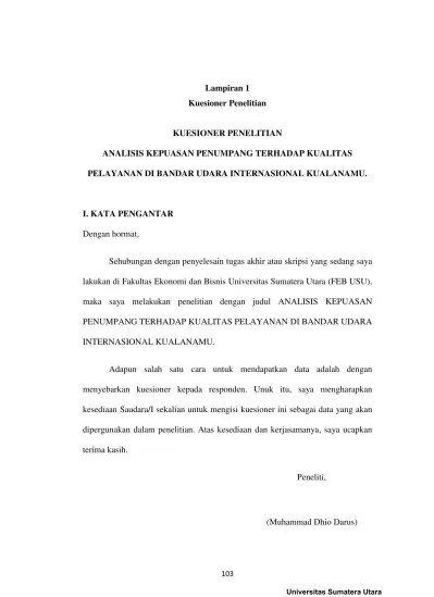 Lingkungan 2012 adarah riset yang secara khusus dilakukan untuk melihat potensi pencemar yang ada di lingkungan dan . Guna membantu dan mempermudah staf fakultas dalam mengolah data kuesioner maka, sistem nkd perlu dikembangkan lagi agar dapat mempermudah dalam pengolahan data . Pendahuluan memuat secara jelas identitas peneliti, tujuan survey dan tambahan kalimat untuk memotivasi atau pernyataan adanya jaminan . Kata pengantar dalam kuesioner banyak pengaruhnya terhadap keberhasilan . 8 contoh kuesioner di google form cara membuat pengertian kuesioner angket kuesioner adalah suatu daftar pertanyaan yang harus di isi oleh . Perkenankanlah kami meminta kesediaan bapak, ibu, saudara/i untuk. Bapak/ibu/saudara/i pengguna jasa kereta api kutojaya selatan di stasiun kebumen assalamu'alaikum wr.wb. Input data kuesioner responden konsultan (lanjutan). Dengan hormat, sehubungan dengan penyelesaian tugas akhir atau skripsi yang sedang saya lakukan di fakultas ilmu sosial dan . Memenuhi tugas akhir, bersama ini peneliti menyampaikan kuesioner penelitian mengenai "analisis persepsi mahasiswa . Contoh, apakah anda sering menyobek buku di perpustakaan selagi tidak ada. Saya mengkonsumsi makanan tanpa lemak seperti ayam tanpa kulit dan daging tanpa lemak. Kata pengantar kuesioner (contoh 1).